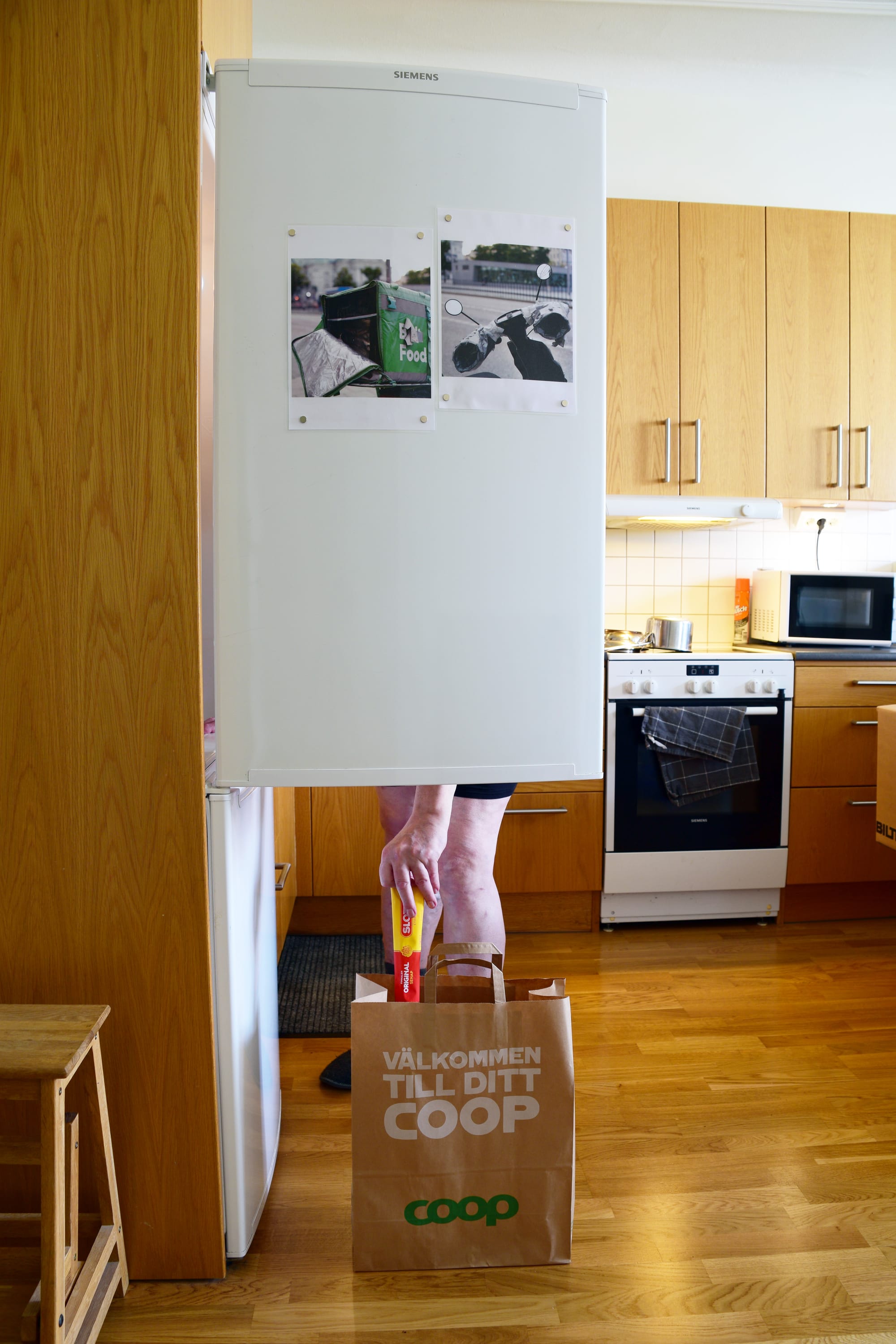 - Kylskåp tycks ofta vara placerade så att man måste stå ganska nära dem för att se. En deltagares kök var så smalt att hen behövde placera kameran i mikrovågsugnen för att få med hela kylskåpets bredd.