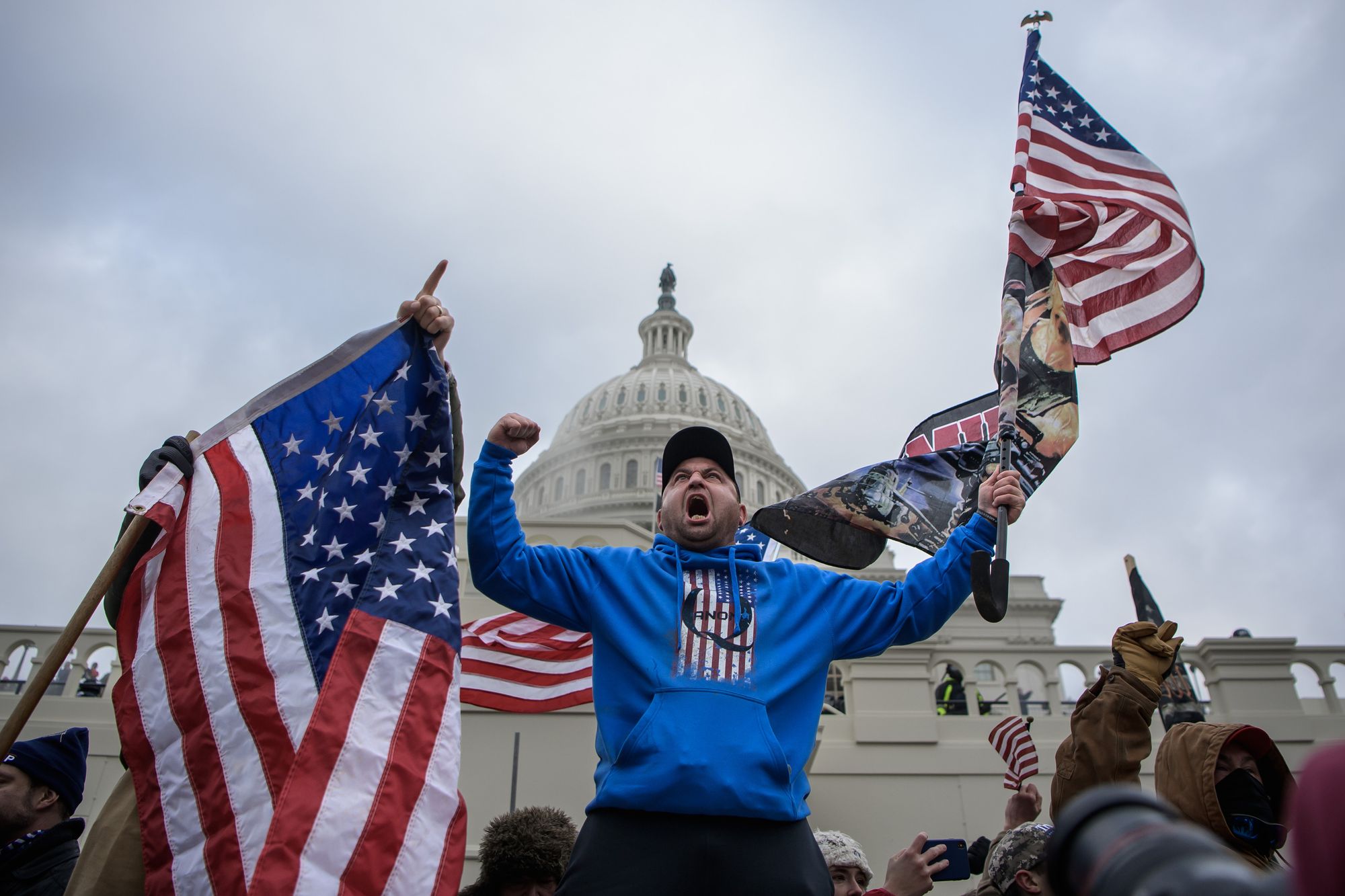 Joel Marklunds bild har ett starkt uttryck, men det är ett uttryck som är gjort för att bli en bild. Jag kommer inte ifrån känslan av att mannen på bilden vill bli sedd och fotograferad på precis det sätt som Joel Marklund gjort. Fotografen avtäcker inte någonting, och det finns inte mycket i bilden som lockar mig att tänka vidare. Narrativet är sedan länge välbekant — högljudda, arga män som denna man stormade Kapitolium. Bilden är stark i sitt uttryck, men blir ändå inte så mycket mer än en bekräftelse av något jag redan tyckte mig veta.