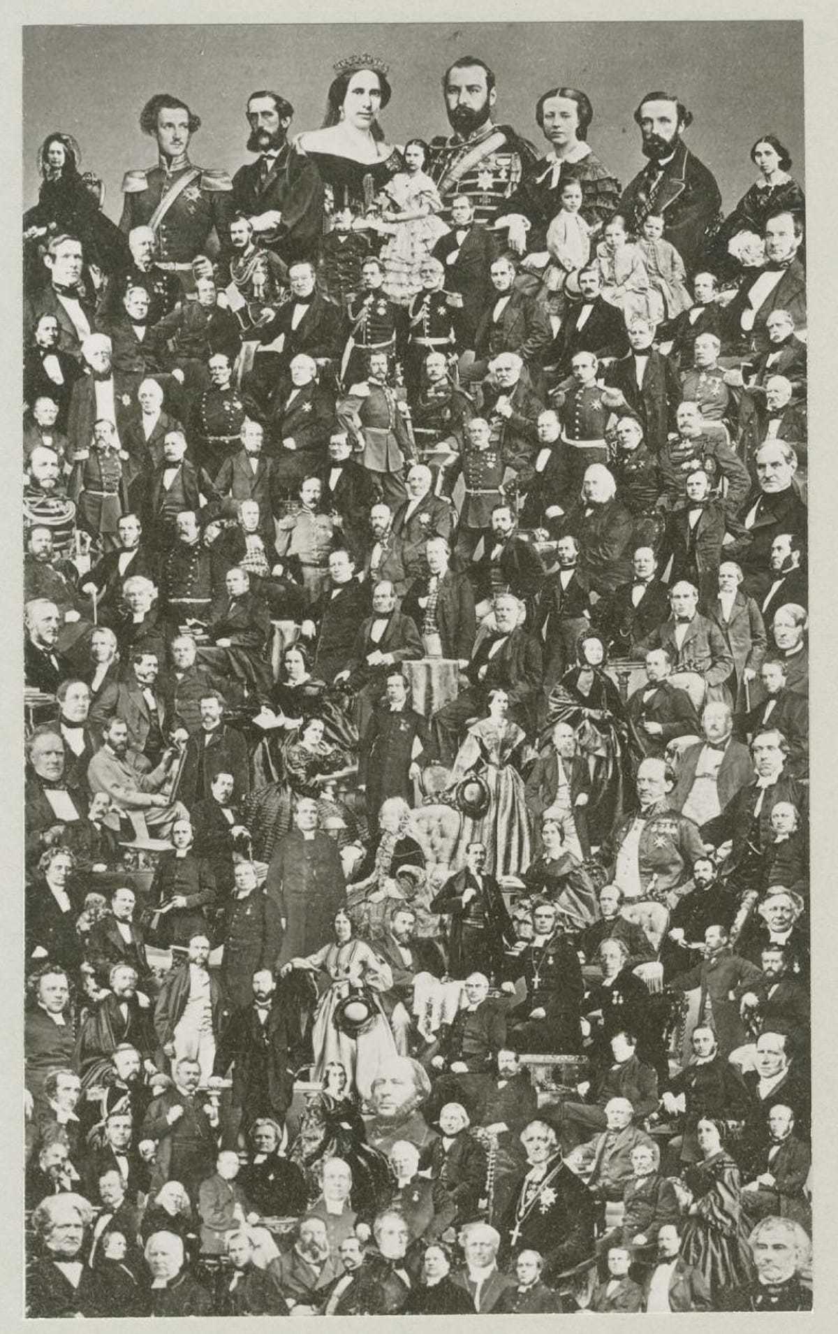 På 1800-talet var sådana här grupporträtt ganska vanliga. Formen kallades »mosaikfotografi« eller »porträttmosaik« och bilderna såldes som samlarobjekt i visitkortsformat (9 x 6 cm).